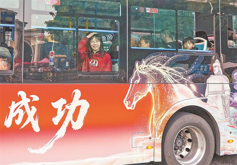 2月11日,厦门8条主干公交线有“马”出没,它们穿梭在大街小巷,将“马上有福、马上有喜、马上成功、马上发财、马上能行、好柿马上花生、马年碳大吉”送往每个角落。报业集团记者 林梓健 摄
