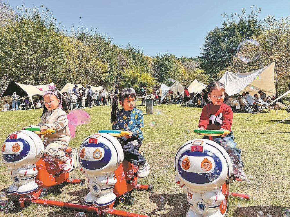 “看,那里是我的家。”市民谢月萍指向五凤山方向,笑着说,“从这里看过去,福州很美吧?”每天上午,她都会推着儿童推车,步行约20分钟,带二宝来郊野公园“吸氧”。