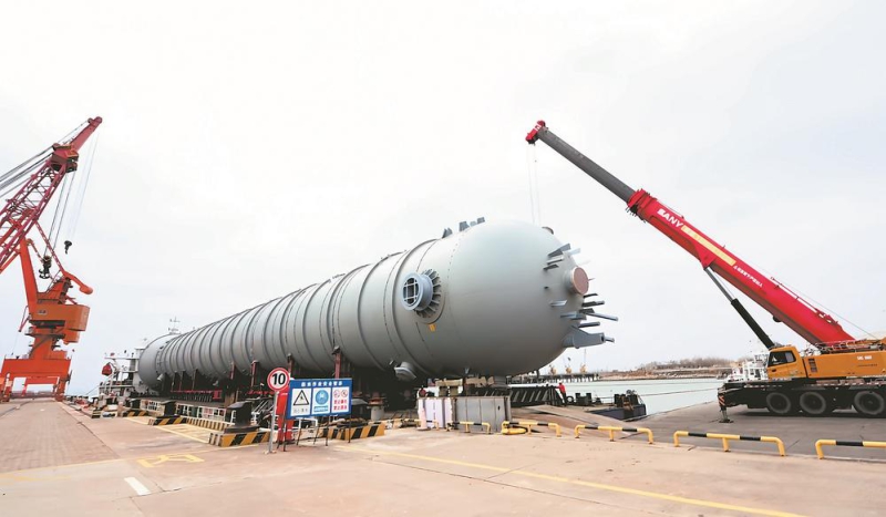 1月7日,中沙古雷乙烯项目中的1号丙烯塔抵达古雷石化园区九龙江古雷码头。该丙烯塔直径9.5米,长102米,重达1909吨,主要用于乙烯装置中的轻烃裂解。随着核心设备逐步到位,项目建设将进入加速阶段。(杜正蓝 牟洋 詹照宇 摄)