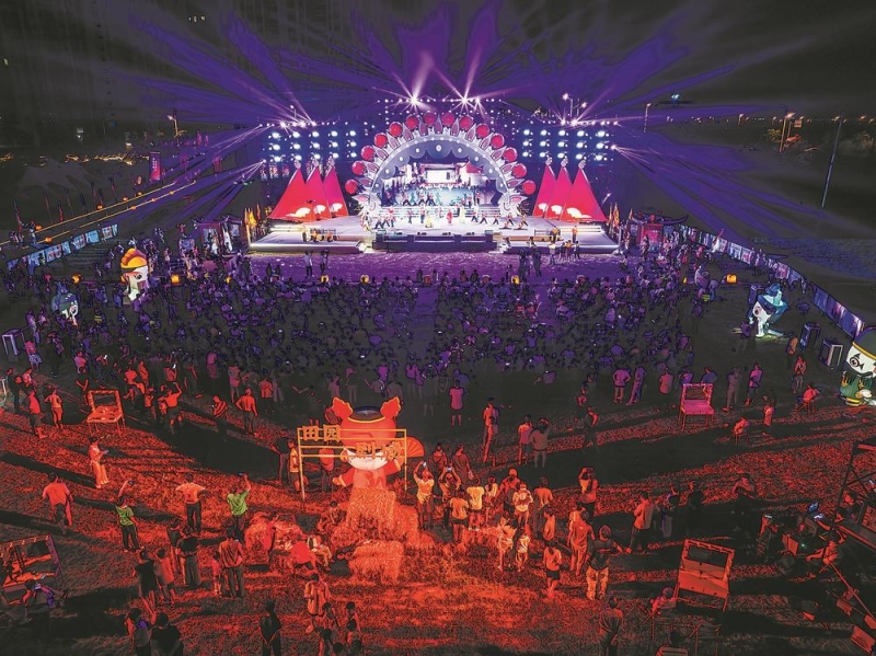 9月28日晚,漳州市芗城区在林语堂文化旅游区主广场举办“盛世庆华诞・芗城谱新篇”2025年芗城区国庆文艺晚会。晚会通过四大篇章12个精彩的文艺节目,生动展示了闽南文化独特魅力,向伟大祖国献上美好祝福。(报业集团记者 杨凌怡 通讯员 郑文典 摄)