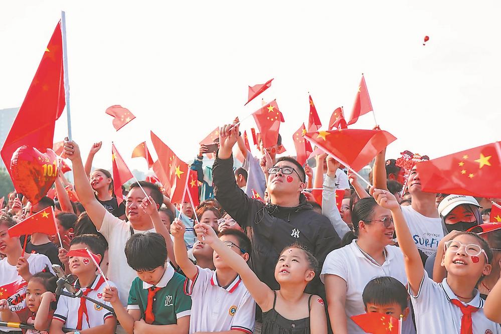 10月1日,龙岩人民广场举行升旗仪式。市民自发来到现场,挥舞国旗,齐声高唱国歌,祝愿祖国繁荣昌盛。(通讯员 石芳 记者 徐士媛 摄)