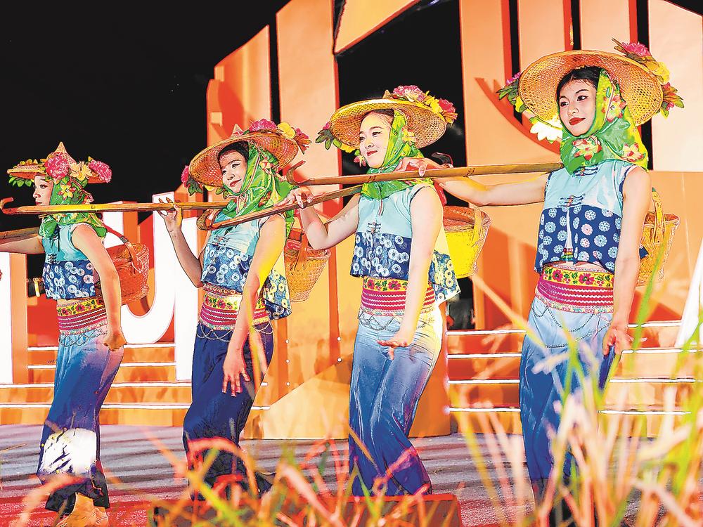 10月1日,在惠安县走马埭农业示范园,一场以稻田艺术为特色的主题活动拉开序幕。图为惠女劳作表演。(记者 何金 通讯员 游雯星 摄)