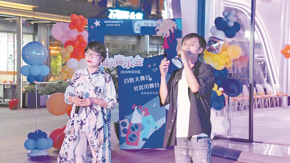 10月1日晚,2025年漳州市龙文区闽南语音乐会在华东里艺术广场上演,市民游客在歌声中感受闽南文化。(报业集团记者 杨凌怡 通讯员 黄秋芬 摄)