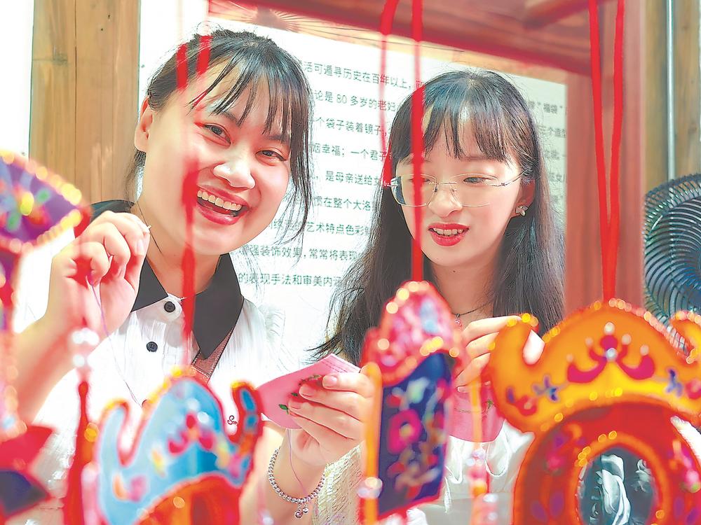 10月2日,漳州游客在沙县区非遗传承展示中心体验非遗“福”袋制作。俞和江 摄