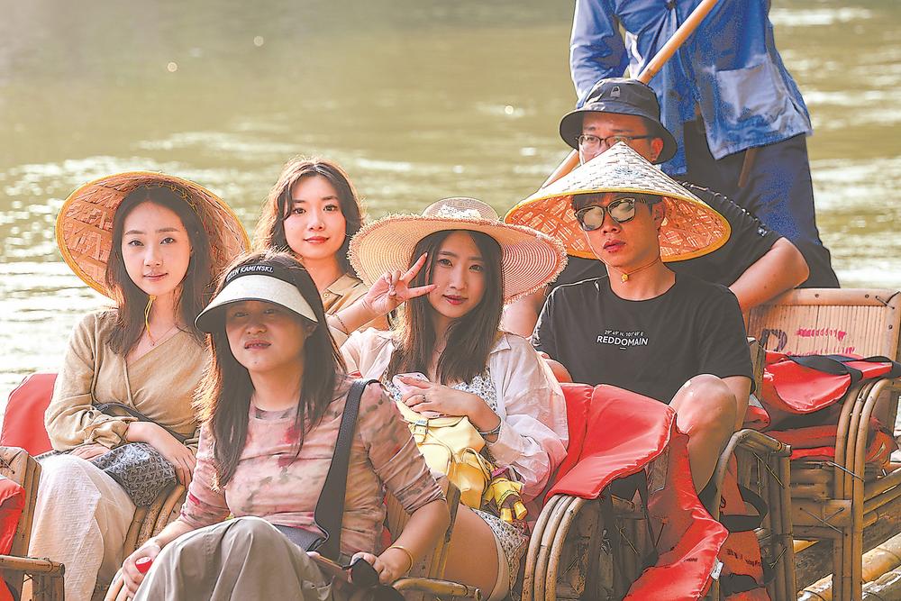 10月1日,众多游客在武夷山九曲溪体验竹筏漂流,在青山绿水间感受自然奇观与茶乡文化的独特魅力,尽享国庆假期。陈天博 摄