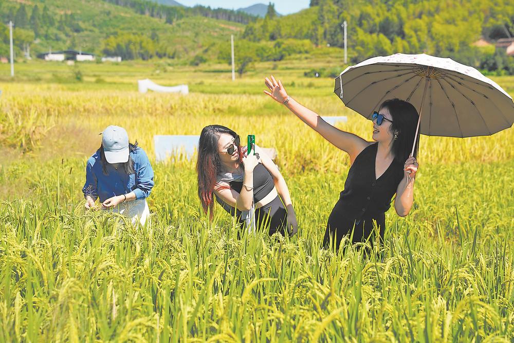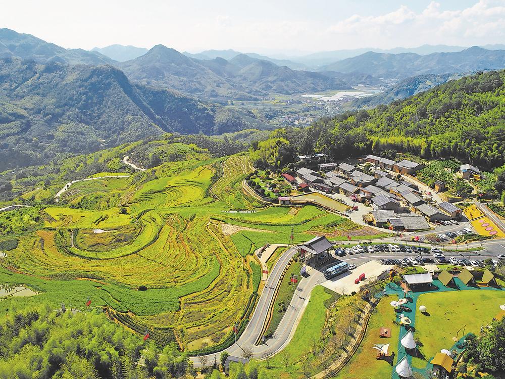 国庆中秋期间,政和县星溪乡念山村梯田里的作物陆续成熟,勾勒出一幅“丰”景画卷,引来众多游客。(通讯员 黄杰敏 摄)