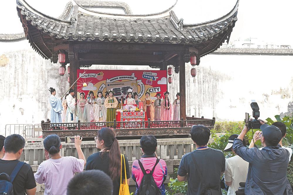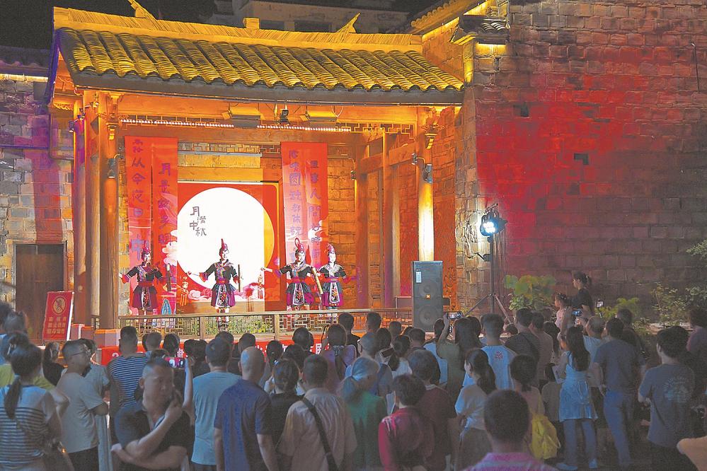 6日晚,泰宁古城尚书第小广场上,一场充满烟火气的中秋演出为市民游客送上祝福。(见习记者 庄紫怡 通讯员 张显超 摄)