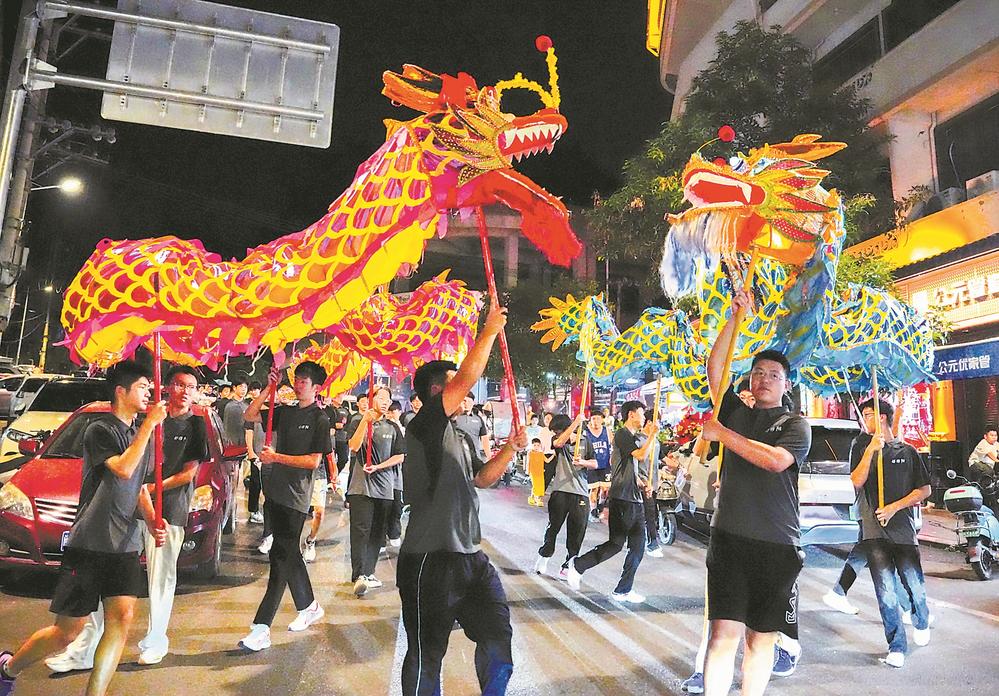 6日晚,福安市穆阳镇,伴随着欢快鼓点,舞龙队伍穿梭于街巷,欢庆中秋。(记者 单志强 通讯员 陈雅芳 摄)