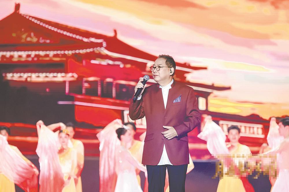 5日晚,“月是故乡明——2025海峡两岸(漳州)中秋晚会”在漳州市东山县举办。晚会以“同根·同源·同心圆”为主题,呈现一场精彩纷呈的月夜盛典。图为张明敏在晚会上演唱《我的中国心》。(报业集团记者 萧镇平 摄)