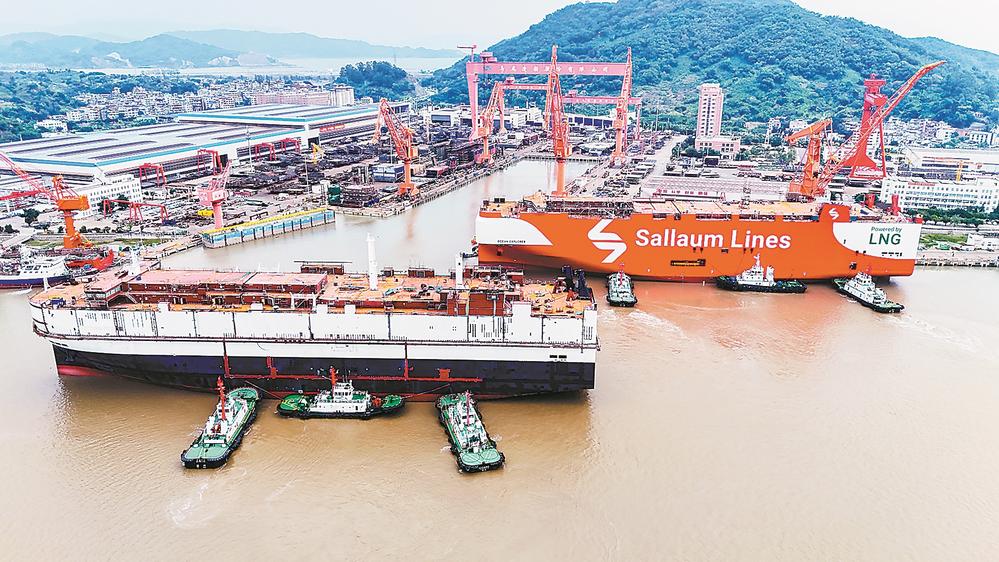 随着世界航运业绿色化、智能化发展步伐加快,新一代双燃料汽车滚装船以其优异的环保性能成为各大船东公司的新宠。福建船政抢抓新能源船舶绿色赛道,目前手持船舶订单158艘,其中汽车滚装船订单17艘,船东遍布英国、日本、法国、新加坡、马来西亚等多个国家和地区。(记者 张文奎 通讯员 唐辉 摄)