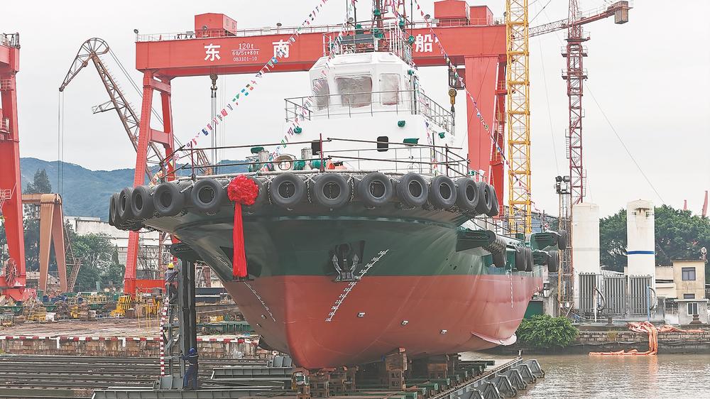 日前,福州港首艘2940kW纯电池动力拖轮“福港拖31”顺利下水。这标志着福州港纯电拖轮建造项目取得阶段性的关键进展。作为福州港发展新质生产力的重要战略举措,“福港拖31”纯电拖轮项目同时也是践行国家“双碳”目标、推动港口高质量发展的标志性成果。(记者 张文奎 通讯员 李群 摄影报道)
