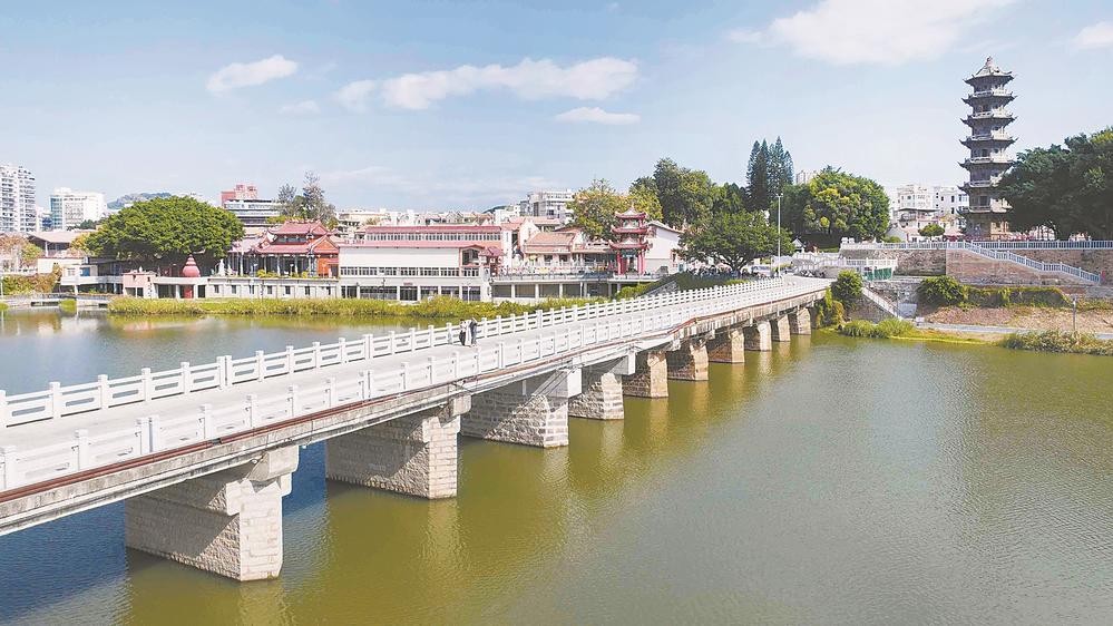 在2023年台风“海葵”中受损的明代龙首桥,目前已完成修缮。龙首桥位于福清市龙江街道南门社区,桥长190米、宽8.2米,共设20孔,其中1至9孔为明代文物本体,承载着福清数百年的城市记忆与文脉传承。该桥横跨龙江两岸,系龙江上游第一座古桥,故得名“龙首桥”。(记者 张文奎 通讯员 林鑫 摄)