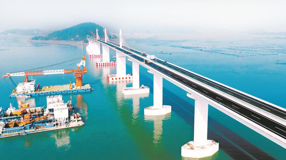 22日中午12时,G1514宁德至上饶国家高速公路(简称“宁上高速”)霞浦溪南互通至霞浦下浒枢纽段正式通车,标志着宁上高速实现全线通车。宁上高速全线通车后,宁德至霞浦东冲半岛的车程由原先的3小时缩短至1小时以内,将显著提升霞浦特色海洋产品的运输效率,有效放大霞浦文旅资源的集聚效应。图为宁上高速东吾洋特大桥。(戴敏 叶文兵 摄)