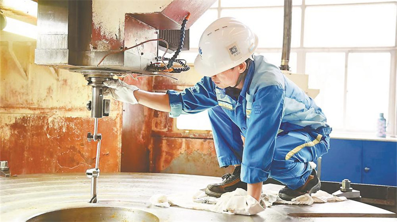 2026年刚刚拉开序幕,企业生产车间满负荷开工。机器转起来,工人忙起来,争分夺秒赶订单、抢进度,全力冲刺第一季度“开门红”,为全年生产目标筑牢根基。图为3日,位于三明的中化(福建)橡塑机械有限公司三明分公司总装车间内,工人正有序加工相关部件。(吴伟 摄影报道)