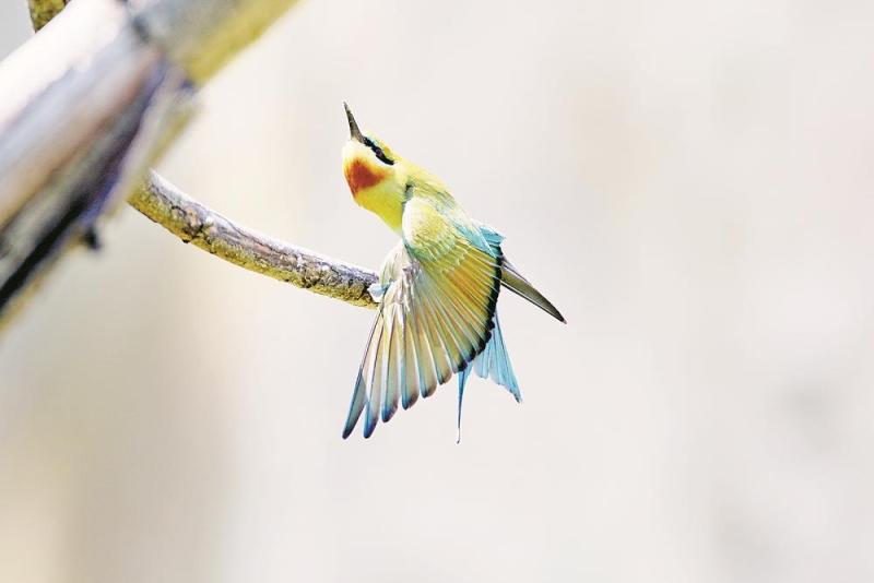 栗喉蜂虎张开美丽的翅膀。(受访者供图)