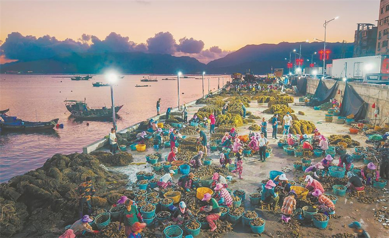 渔民们在连江县筱埕镇定海村码头分拣牡蛎。通讯员 丁天霖 摄