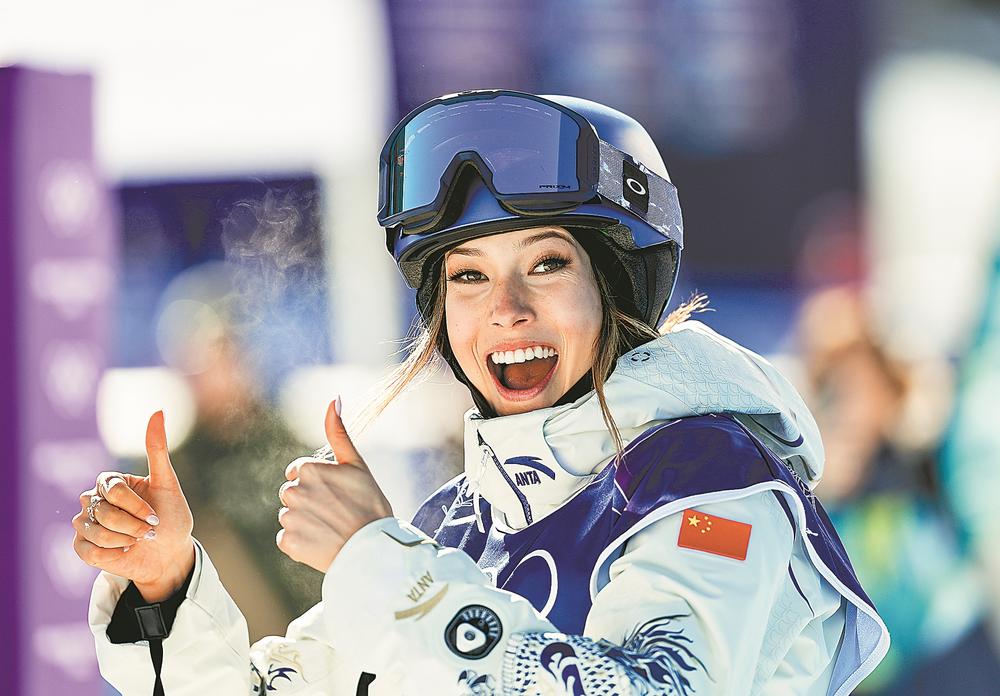 谷爱凌参与设计的安踏米兰冬奥战袍以青花瓷为灵感,结合金边龙鳞纹样与雪花纹饰,兼顾动态美感与运动功能。(新华社)