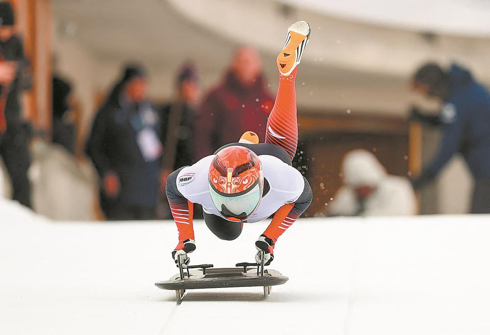 一系列由安踏自主研发的核心技术被更深度融入中国钢架雪车队的比赛装备中。(新华社)