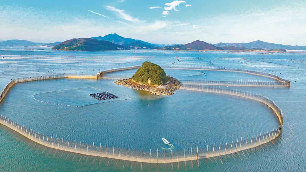 宁德蕉城区三都澳,全球最集中的水产养殖中心之一。这片海上牧场,渔排连绵、渔船穿梭,大黄鱼产量多年居全国海水养殖鱼类之首。