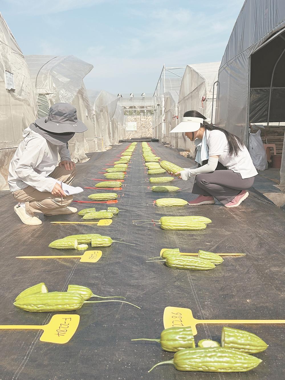 农运来公司科研人员正在对不同苦瓜品种进行测评。(受访者供图)