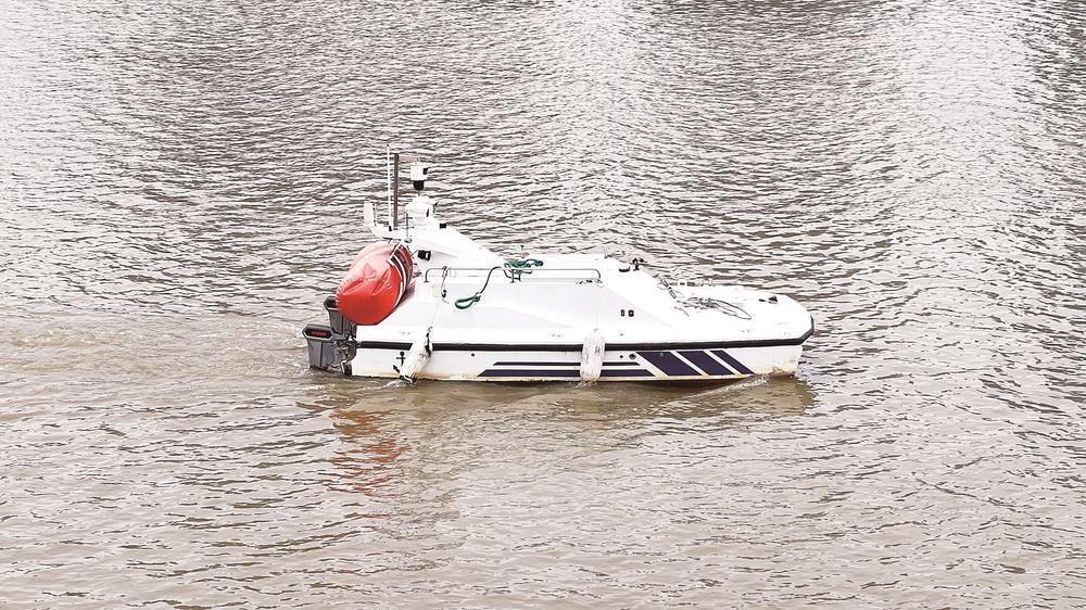 正在自主巡航的无人执法船