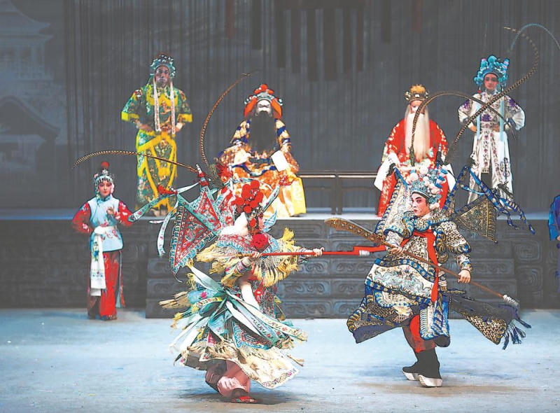 在剧目编排上,曾振东充分发挥青年演员的优势,对武戏场面等进行了创新。剧中运用刀、剑、鞭等把子功和翻腾、扑跌等毯子功,配合巧妙的舞台调度,呈现出紧张刺激的武打段落。演员靠旗翻飞、刀枪挥舞,令观众沉浸其中。戏迷黄建友赞叹:“专业剧团的功底就是不一样,带来了一出令人热血沸腾、酣畅淋漓的好戏!”