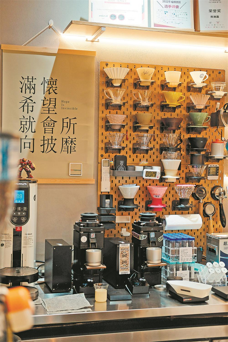 “潜咖啡实验室”里各式的咖啡器具凸显专业。(受访者供图)