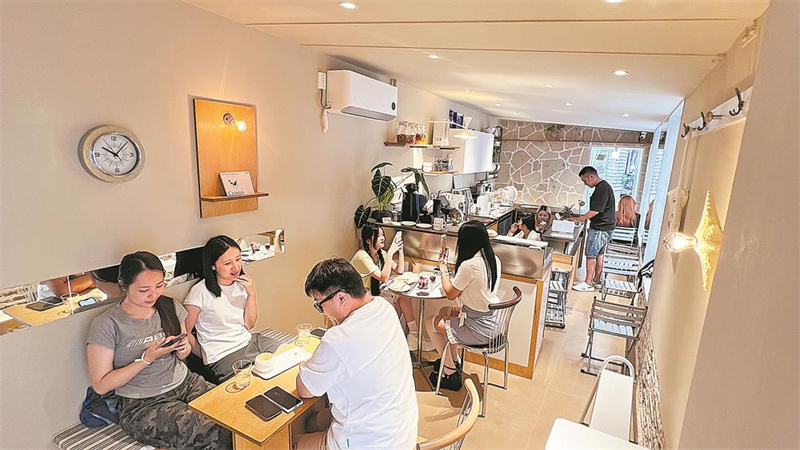 “散步去咖啡”内,顾客正在品咖啡。余跃 摄