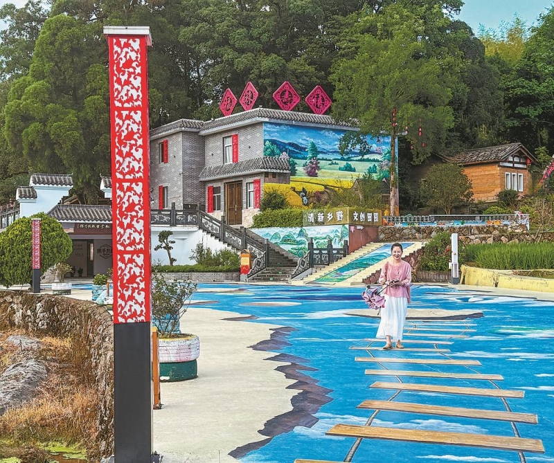 靴岭尾村剪纸风格的民居外立面格外漂亮。马筱簬 摄