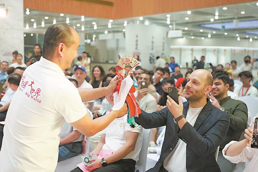 “小马可·波罗”福建文旅推介官全球招募活动启动仪式上,海外嘉宾体验福建布袋木偶戏的魅力。(主办方供图)