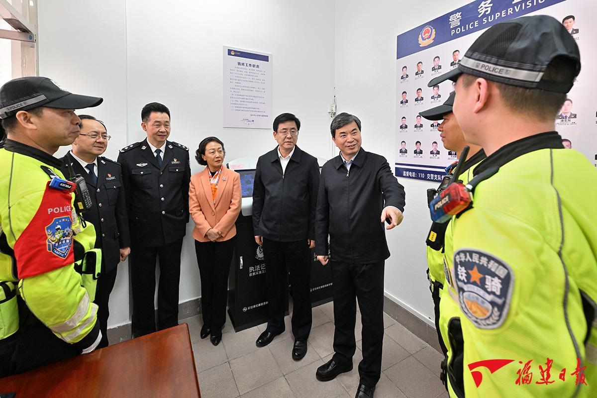 福州市公安局交警支队机动特勤大队是市区交通安全、秩序维护、应急处突的重要力量,交警铁骑穿梭在车流中,为群众平安出行保驾护航。周祖翼、赵龙来到大队值班室,看望慰问一线执勤交警,详细听取节日交通应急保障、警卫安保、值班值守等介绍。周祖翼、赵龙与大家一一握手,希望他们履职尽责、文明执法,加强对交通状况的实时监测分析,加大对重点路段重点时段的路面巡逻力度,全力保障交通安全顺畅。要在执法执勤中做好自我安全防护,强化应对复杂情况的训练,积极为群众排忧解难,为游客提供指引帮助,用辛勤付出换来城市安宁祥和。