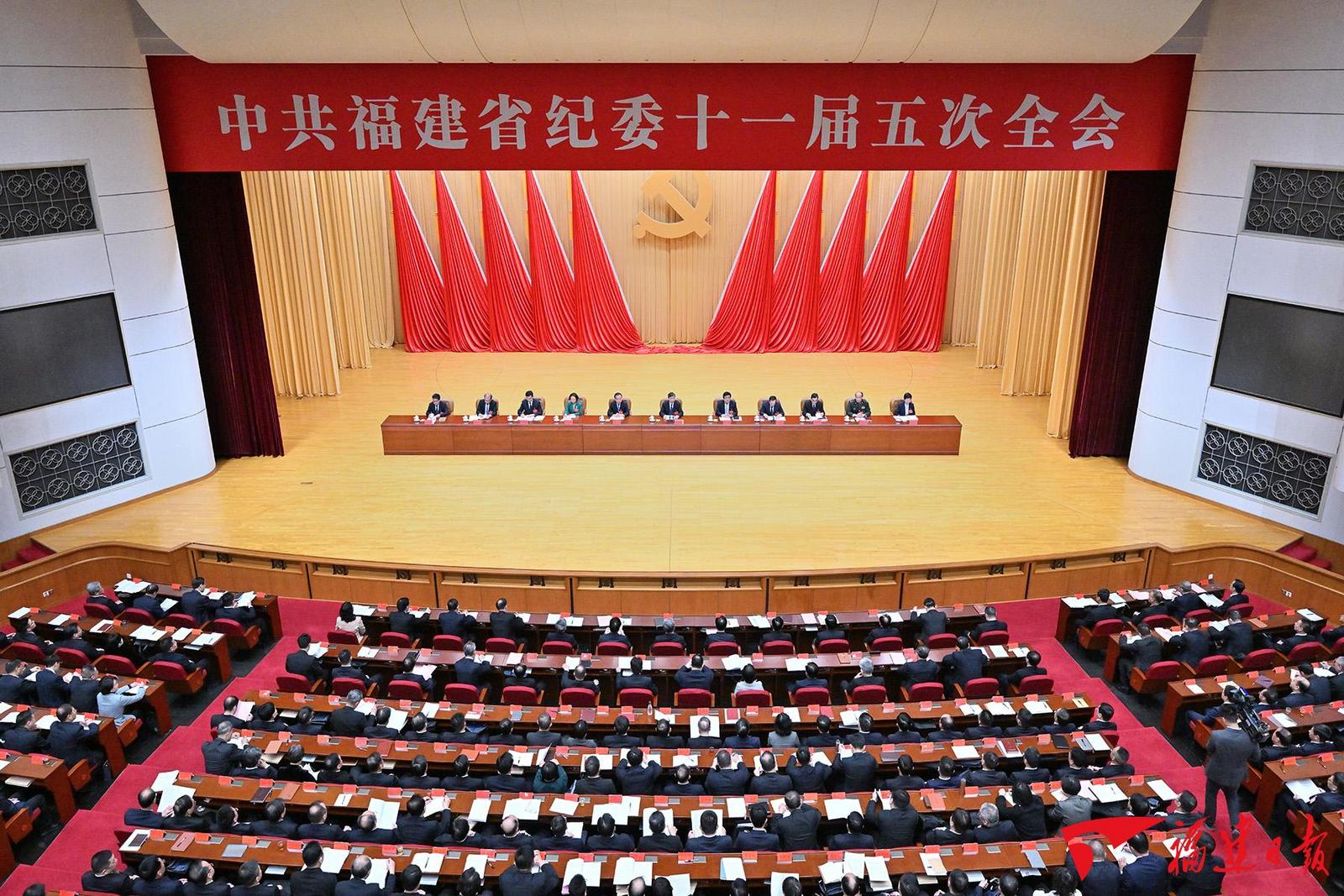 1月20日,中共福建省第十一届纪律检查委员会第五次全体会议在福州召开。省委书记周祖翼出席并讲话,强调要深入学习贯彻习近平总书记关于党的建设的重要思想、关于党的自我革命的重要思想,全面贯彻落实二十届中央纪委四次全会精神,坚决打好反腐败斗争攻坚战持久战总体战,持续巩固发展福建风清气正的良好政治生态,以全面从严治党新成效为全省在中国式现代化建设中奋勇争先提供坚强保障。省委副书记、省长赵龙,省政协主席滕佳材出席。省委常委、省纪委书记、省监委主任迟耀云主持并作工作报告。