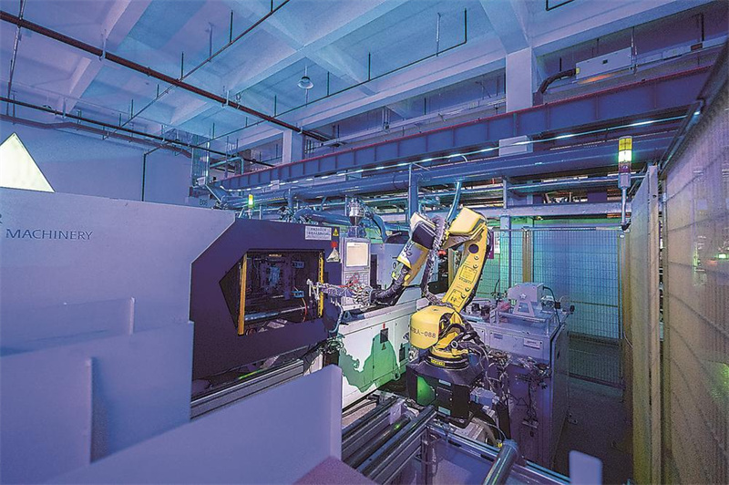 “十四五”期间,我省聚焦数字产业化、产业数字化“双轮驱动”。图为在泉州科牧智能公司的“绿色黑灯工厂”里,机器人在注塑生产线上工作。