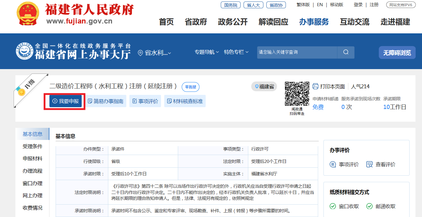 3.二级造价工程师(水利工程)注册(延续注册)闽政通APP扫码(下图)申请