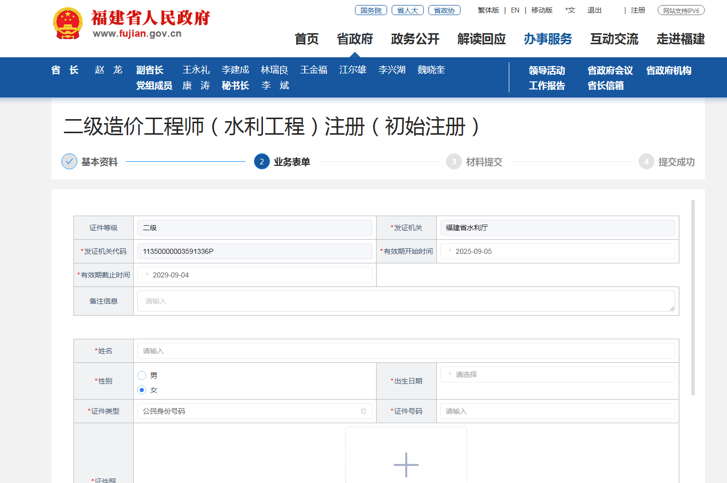 1.申请经福建省水利厅批复后,颁发“中华人民共和国二级造价工程师(水利工程)注册证书”电子证照,证照有效期4年,样式如下图。