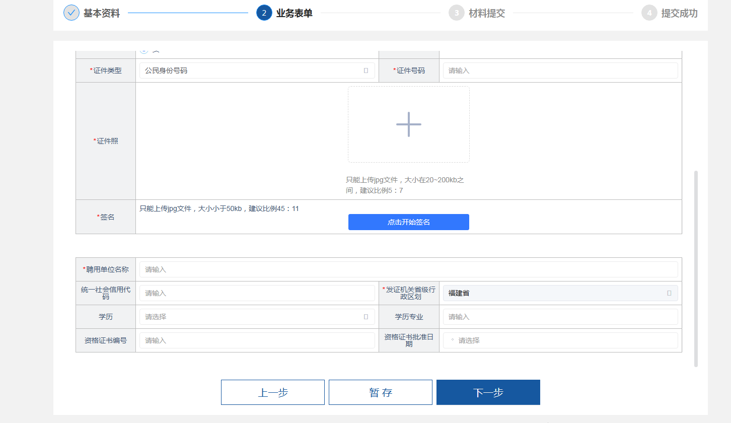 (5)进入申报页面/业务表单,按照要求填写上传“红*”内容,选择“下一步”