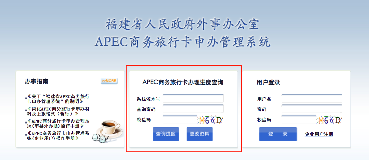 APEC商务旅行卡办理进度查询:http://112.111.2.19:8096/APECWeb/Login.aspx