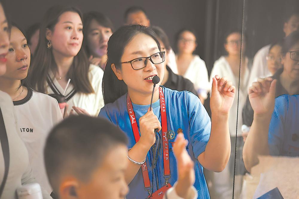 一场场精彩的讲解,在润物无声中传递着文化传播的共振。“有观众意犹未尽,问我下一场讲解是什么时候。这样的瞬间让我特别欣慰。”李梅说,有一位名叫潘晓凡的观众听完讲解后要了她的微信,后来一直没有联系。令她意外的是,一年后,她收到了对方发来的信息:“李梅老师……昨天我们候选志愿者转正了,我就想着一定要联系您。我到现在都还记得您当时讲解的场景,也是受到您的鼓励我才交了志愿者报名表。”