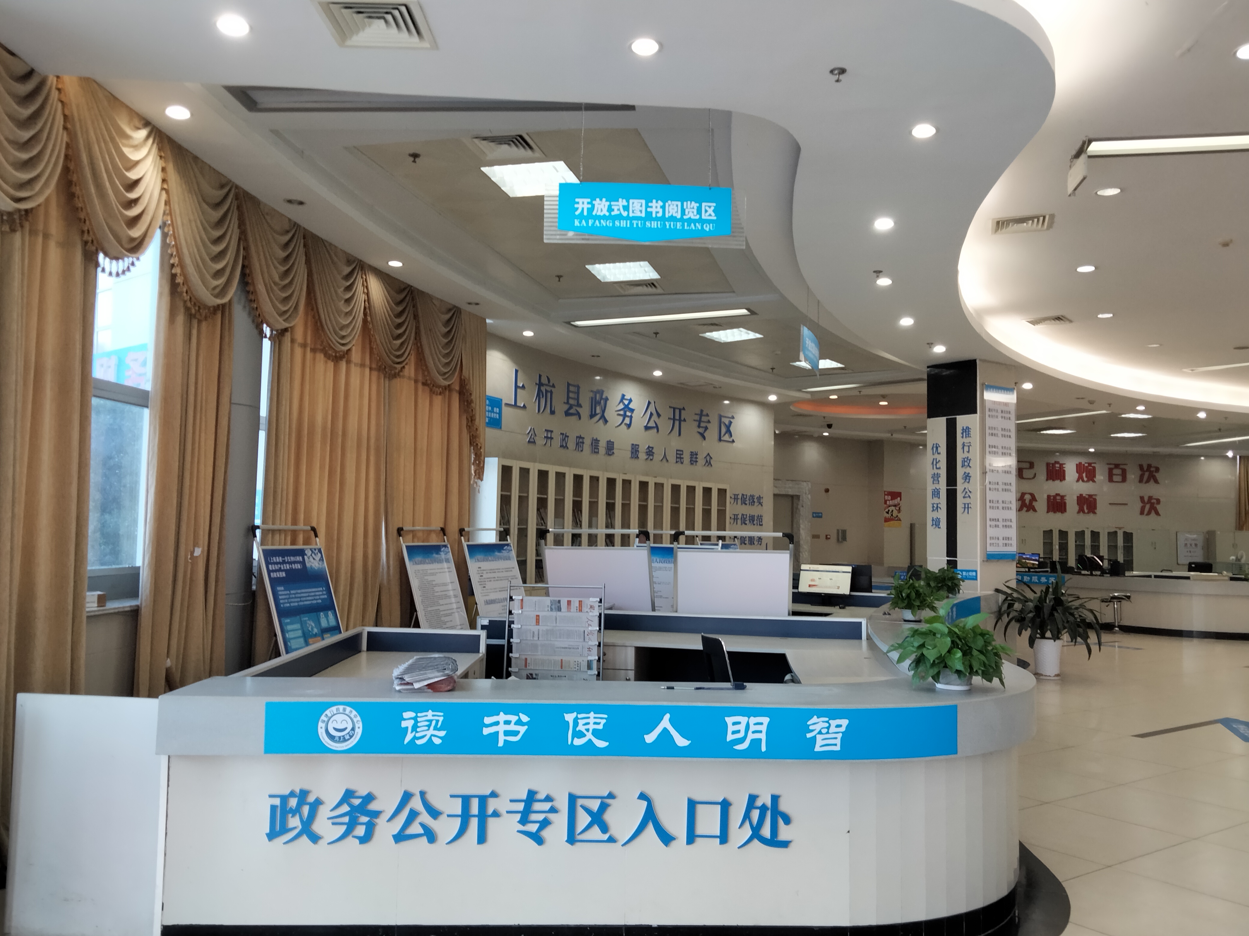 (二)设置政府信息查阅服务区。专区提供政府信息查阅服务,配备了2台7×24小时自助服务查询一体机、3台查询电脑和1台专用打(复)印机,群众可通过触摸屏和专用电脑便捷高效地查询政府信息。设置资料书柜,放置《政务公开实践与进阶》等政务公开相关书籍,并在专区设立特色文化墙,最大程度为群众提供便捷服务;