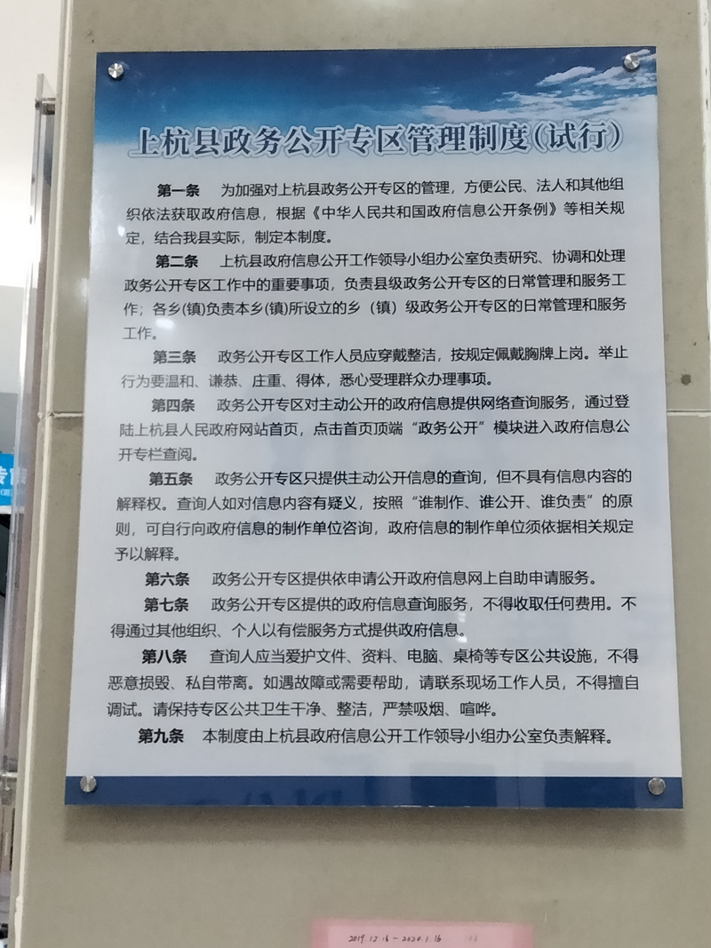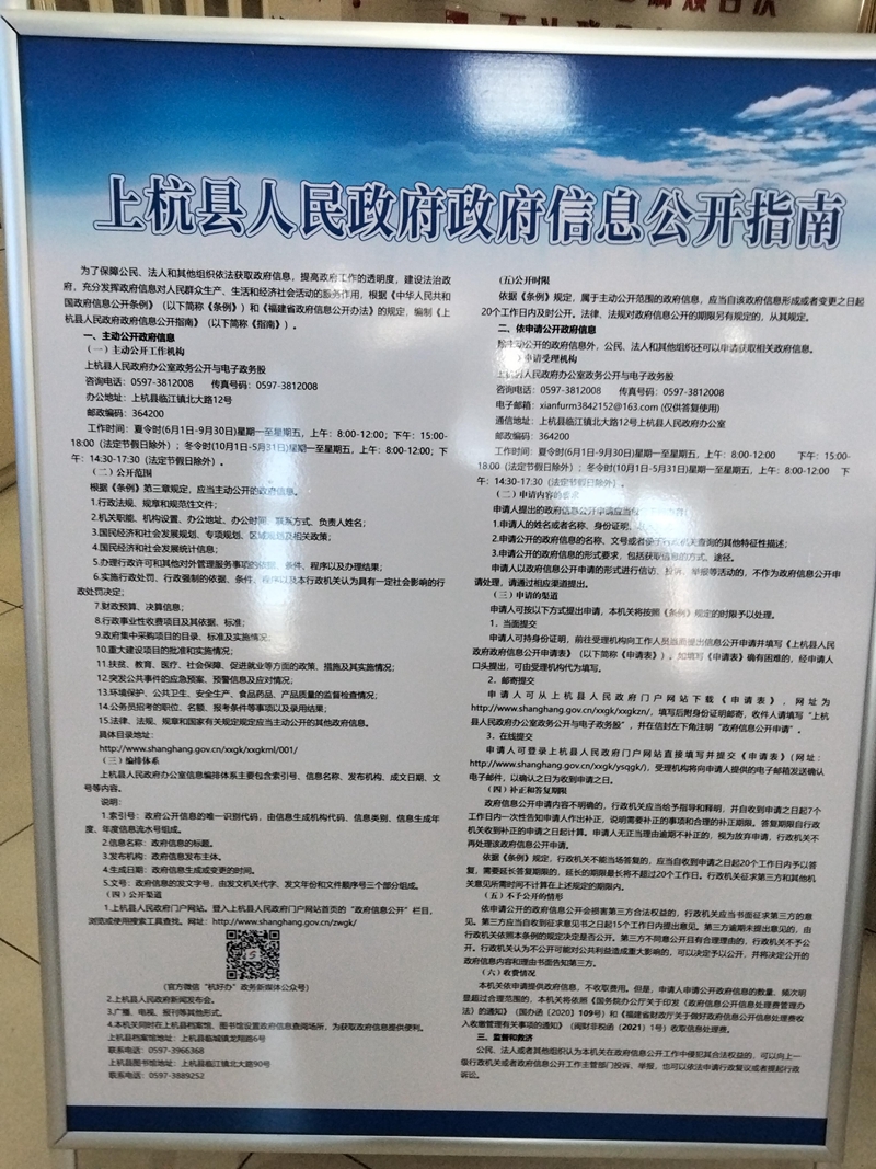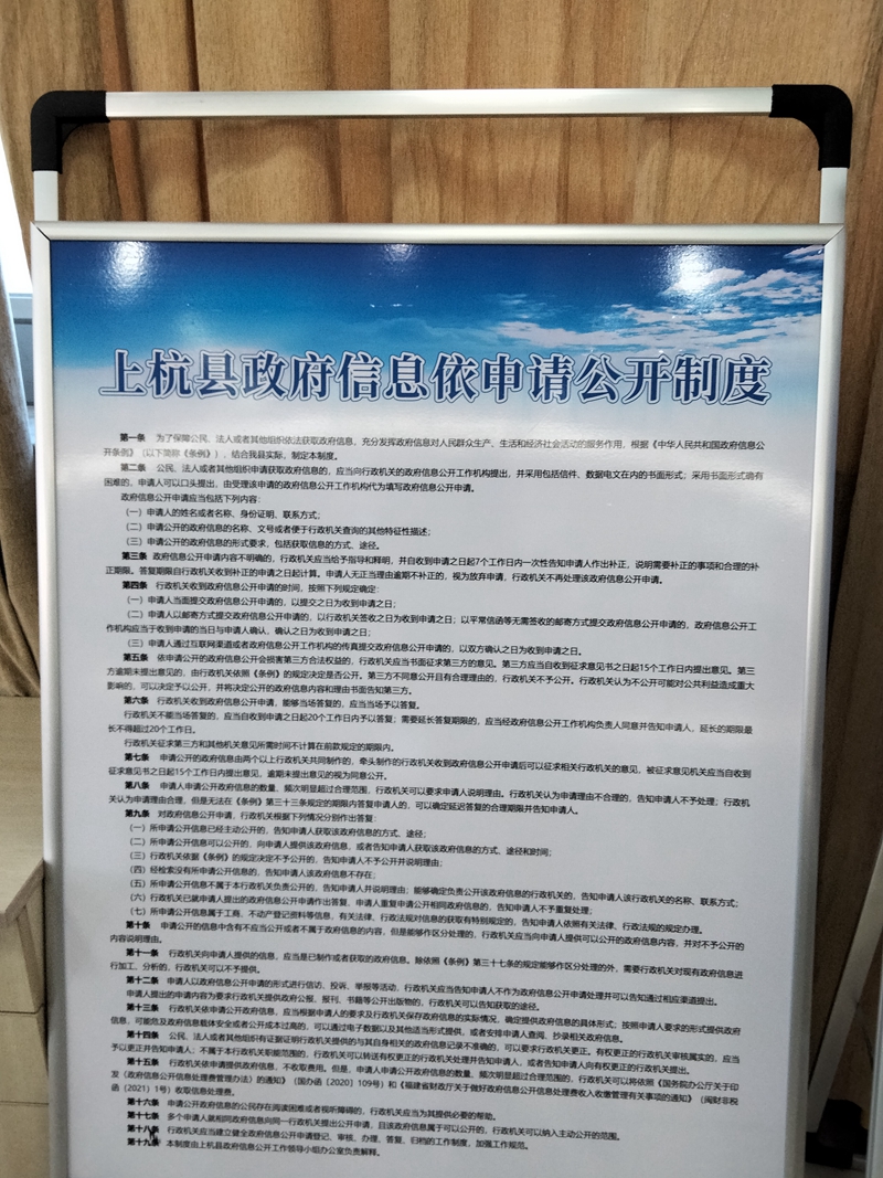 为加强专区管理,同步制定并公开《上杭县人民政府政府信息公开指南》《上杭县政府公开专区管理制度(试行)》等多项制度。