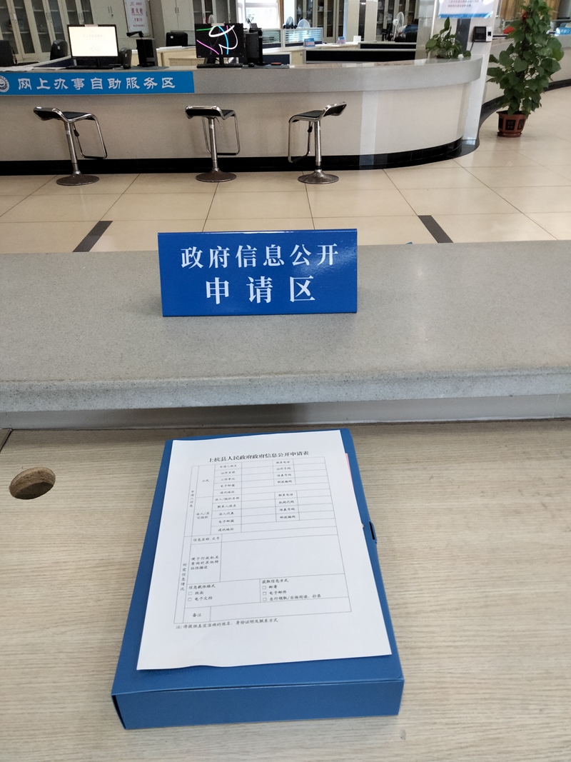(一)设置政府信息公开申请区。专区提供政府信息公开申请接收服务,政府信息公开申请区域标识清晰,以展板的形式公开展示了《上杭县政府信息依申请公开制度》《上杭县政府信息公开申请渠道》《上杭县政府信息公开申请办理流程图》等,并提供《上杭县人民政府政府信息公开申请表》和填写模板;