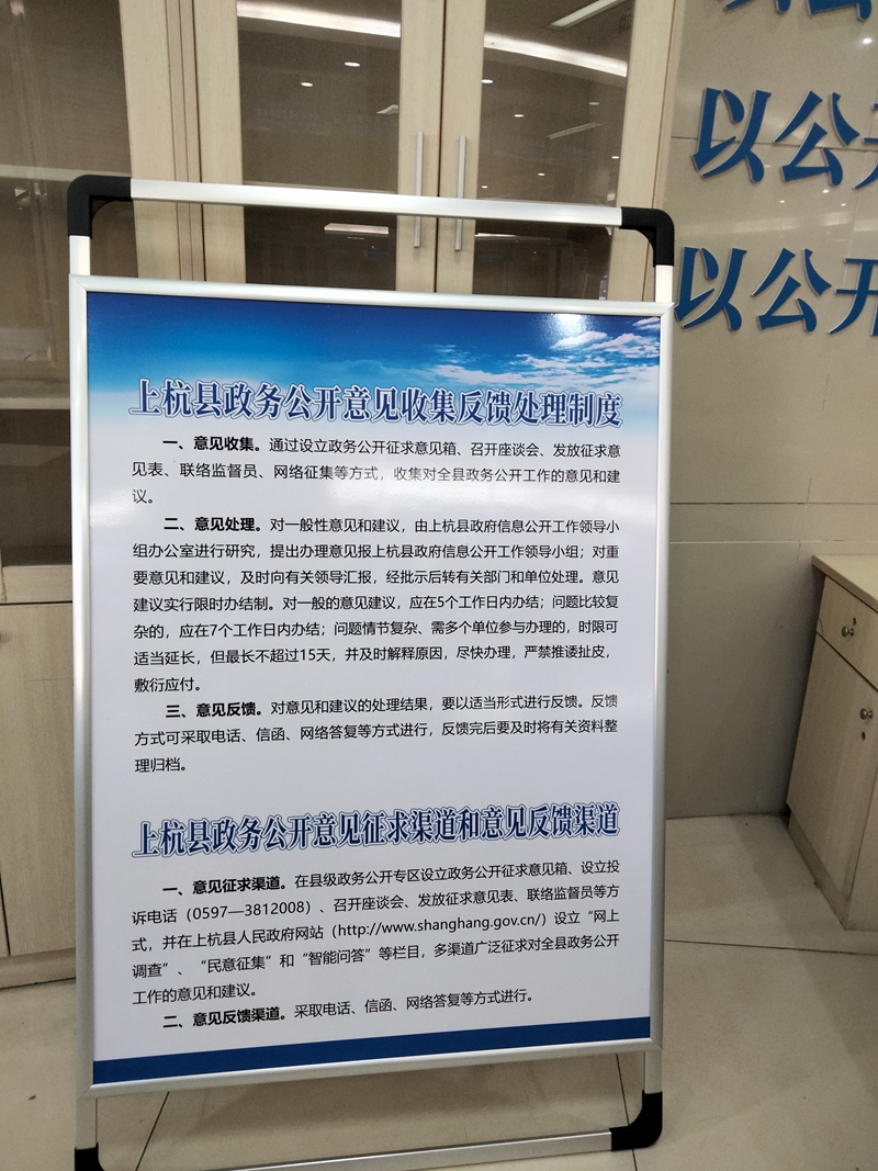 《上杭县政务公开意见收集反馈处理制度》《上杭县政务公开意见征求渠道和意见反馈渠道》