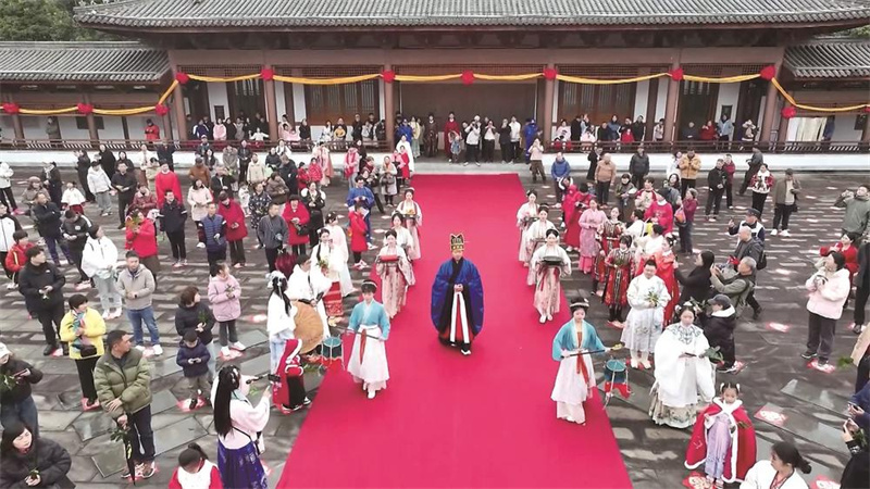 春节期间,一场主题为“穿汉服过大年 拜文公祈福运”的新春祈福活动在考亭书院举行。在庄重的鼓乐声中,游客身着汉服,在司仪的示范引导下,向朱子像敬献桂枝祈愿。除了“敬拜朱子 新春祈福”这个主要环节,现场还为市民、游客安排了传统民俗表演和13个非遗游园活动,以“旅游+文化”的形式吸引四方来客,进一步提升建阳优秀传统文化影响力。