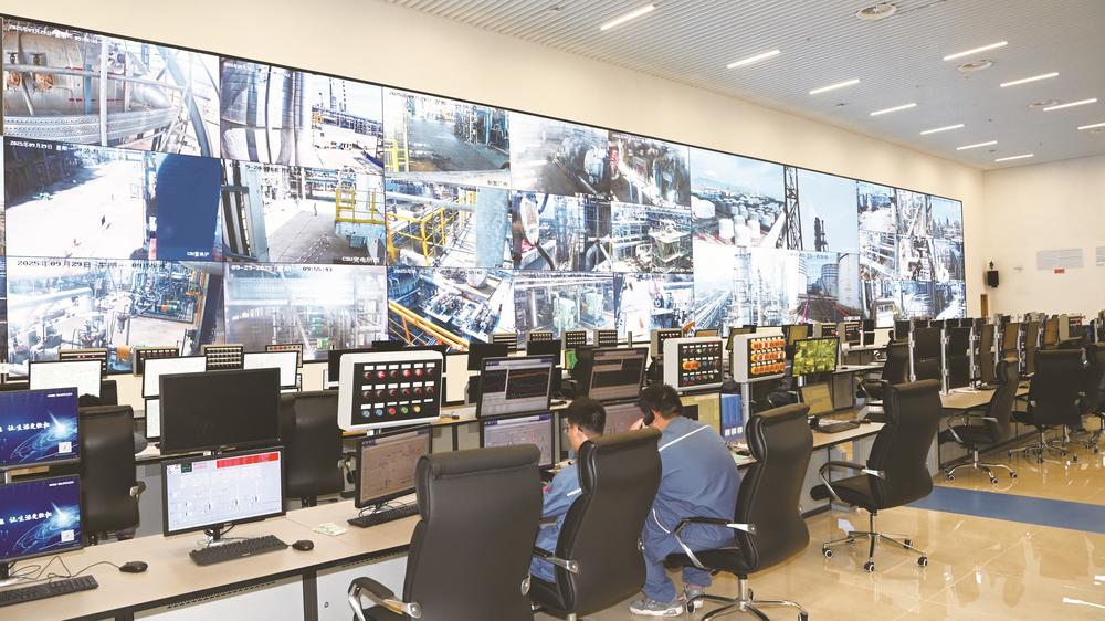 福海创公司工作人员在中控室通过监控屏幕实时观察设备运行参数。詹照宇 摄