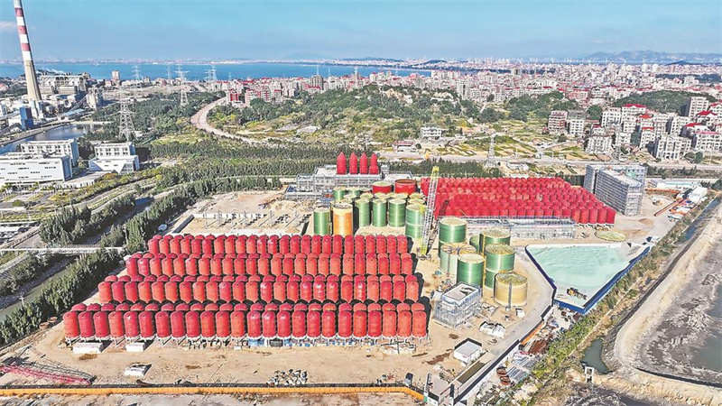 依托深水大港,港口扩容的步伐稳健而迅速。连日来,东吴港区东吴作业区14#泊位后方在建的国投湄洲湾能源供应基地项目现场一片热火朝天。挖掘机、装载机等60多台设备同步施工,160多名工人忙碌作业。