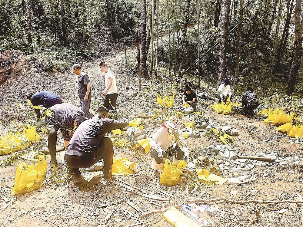 在崎岖的山地上,由20余名造林工人和6名专业技术人员组成的“科技造林突击队”正争分夺秒,将“科研标准”播撒进泥土之中。