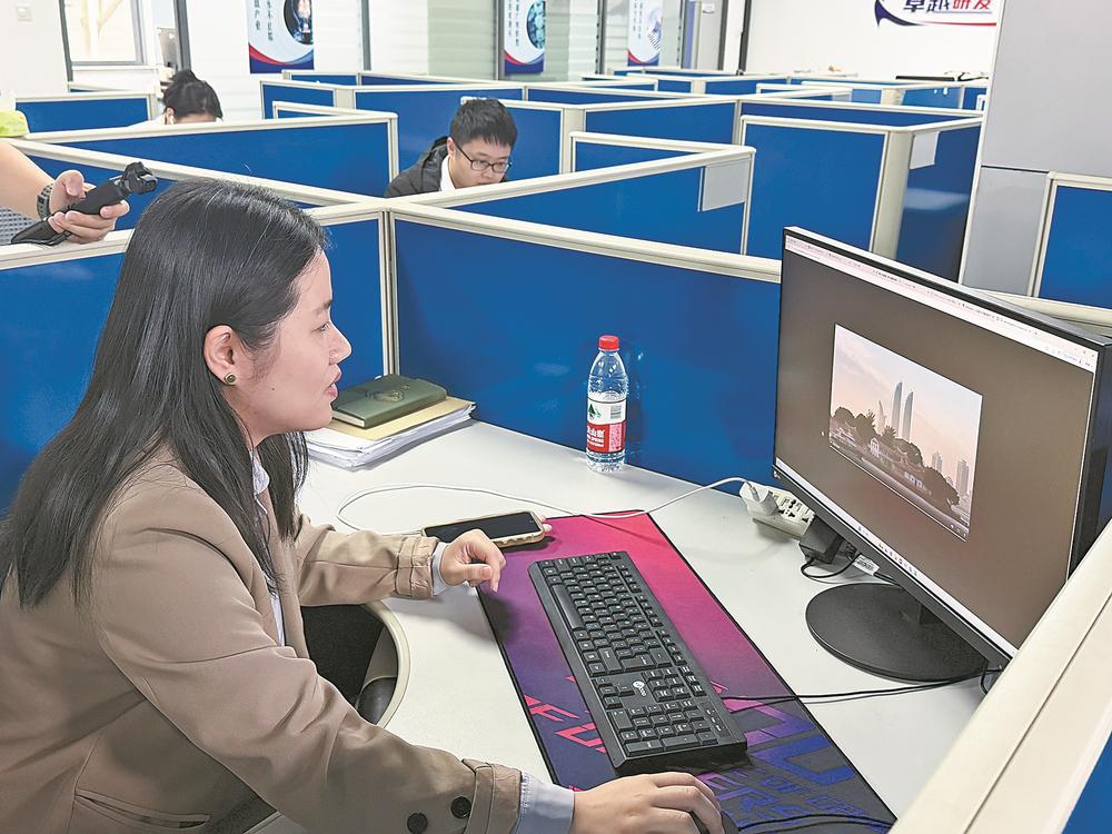 厦门融科公司的制作人员在用AI进行视频生成。