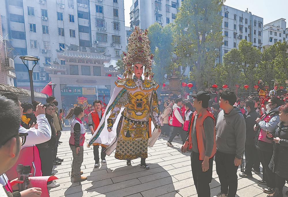 2024“天下娘奶回娘家”活动中的阵头表演,引得民众驻足围观。记者 游庆辉 摄