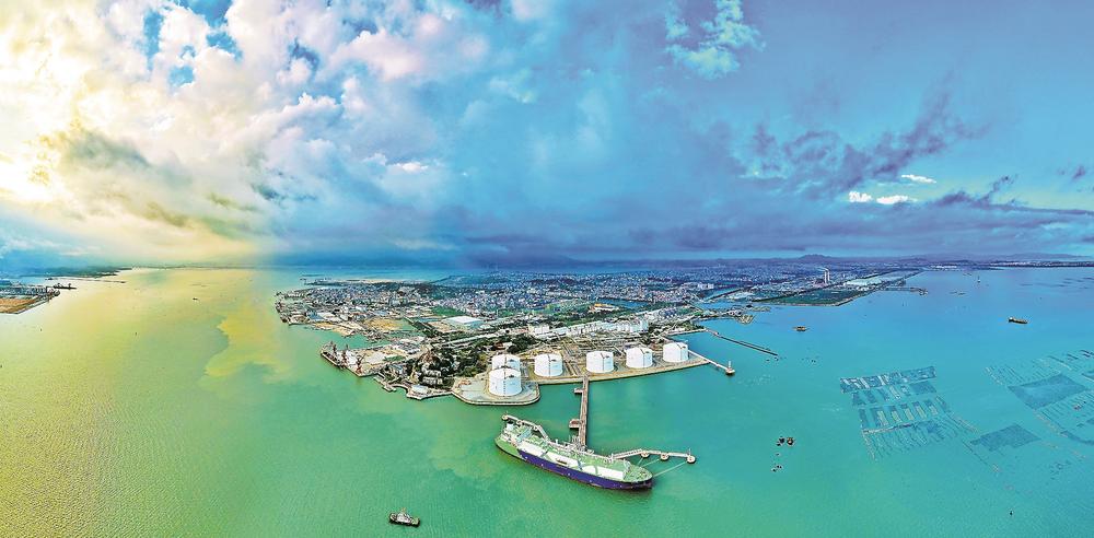 港口码头,货轮往来,装卸繁忙。6日上午,完成天然气卸载的利比里亚籍“MARIA ENERGY/玛丽亚”轮正缓缓驶离秀屿LNG码头,预备返回马来西亚民都鲁。临海处,6只巨大的白色罐体高高矗立,挺拔壮美。