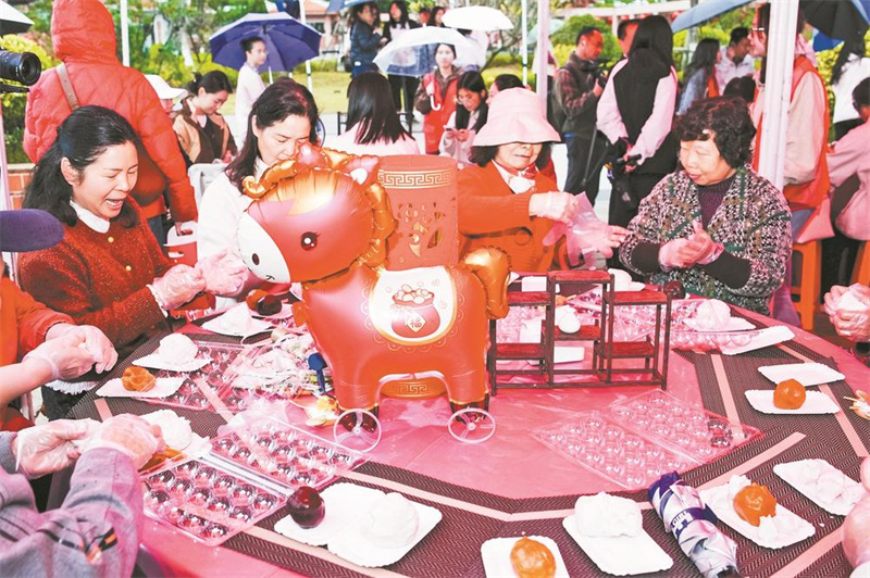 2月28日,湖里坂美民俗文化园内,近百名两岸同胞欢聚一堂。非遗传承人手把手指导台胞剪瓷拼“福”、编织灯笼。台胞李先生举着刚完成的棕编作品,激动地说:“厦门的非遗传承人手艺精细又灵动,这是今年元宵节最好的礼物,我要把这只‘福灯’带回台湾给家人看!”